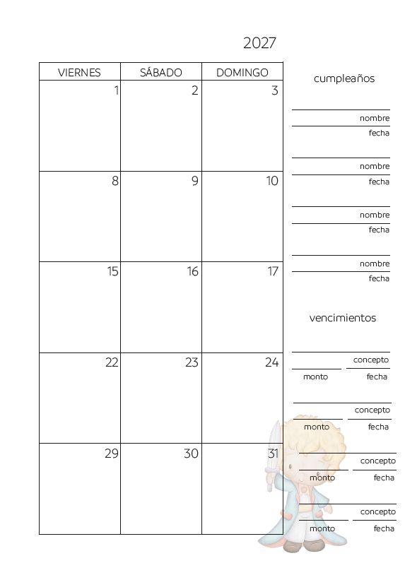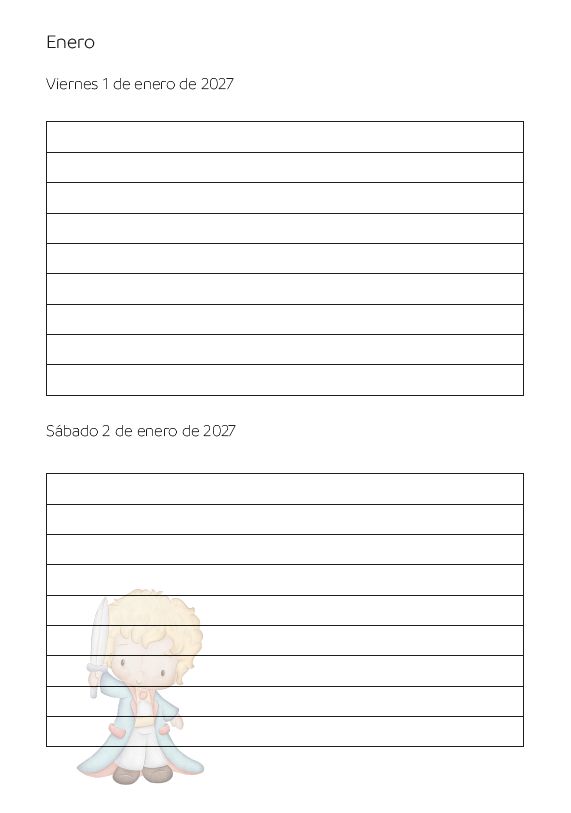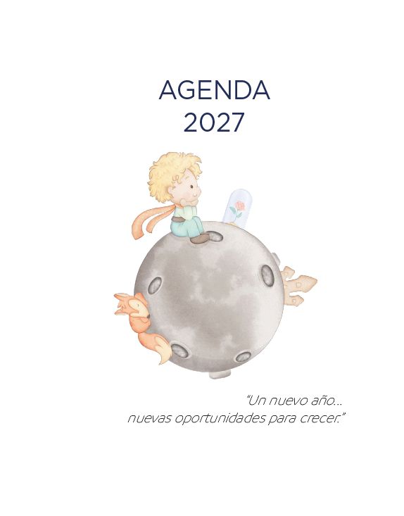 La Agenda Dos días x Página El Principito AÑO 2027, en sus 288 páginas incluye: Carátulas Interiores, Datos Personales, Calendario 2027, Planner mensual, Planillas de Gastos Mensuales, Agenda Dos días x Página sin Horarios y Hojas para Notas. Además, te regalamos un calendario señalador para tu agenda.