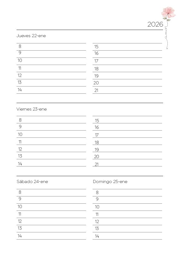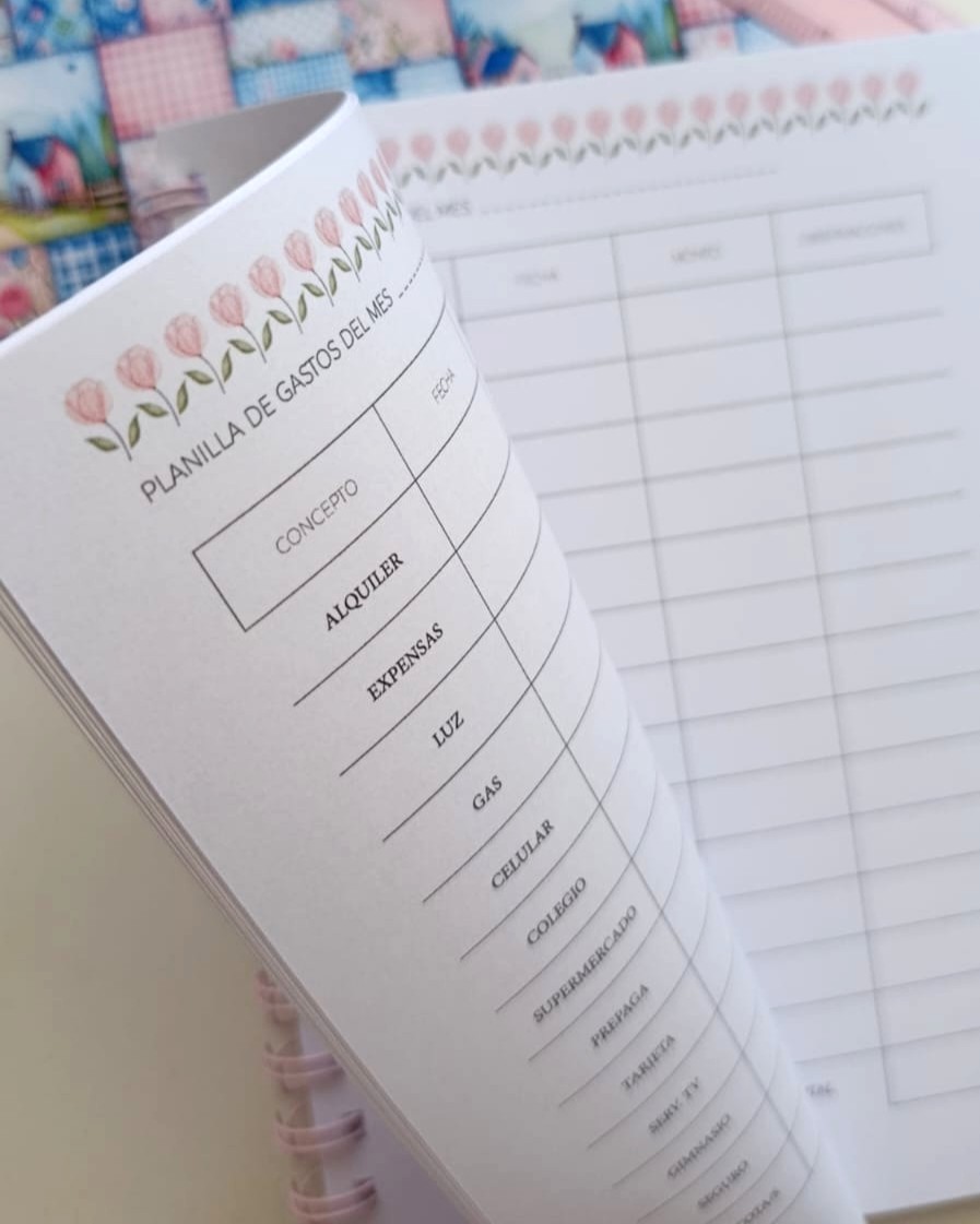 Esta Agenda SEMANAL, en sus 192 páginas incluye: Carátulas, Calendario 2026-2027, Planner mensual, Planillas de Gastos Mensuales, Agenda Semanal con horarios, y Hojas para Notas. Además, te regalamos un calendario señalador para tu agenda.