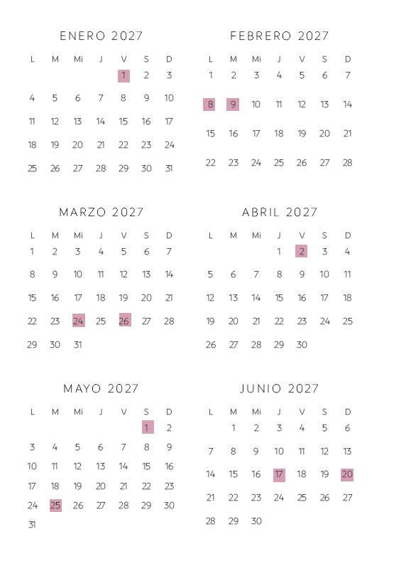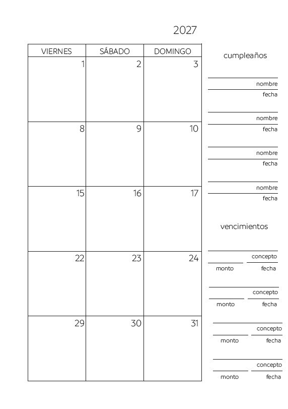 AGENDA SEMANAL 2027 POIRET – 4 DISEÑOS