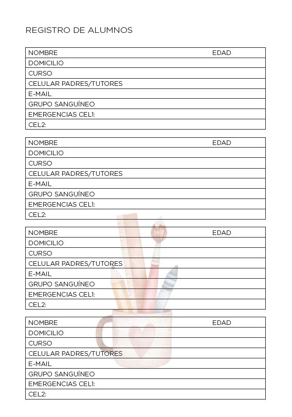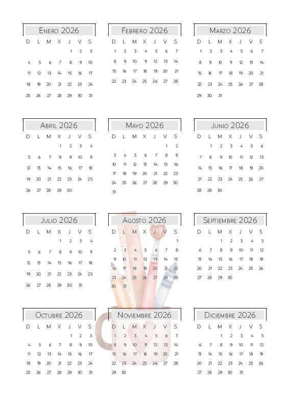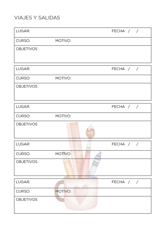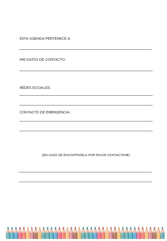 Esta Agenda SEMANAL Docente, en sus 220 páginas incluye: Carátulas Interiores, Datos Personales, Calendario 2026-2027, Planner mensual, Planillas de Gastos, Agenda Semanal, Planillas de Calificación, Reuniones, Viajes y Salidas, Registro de Alumnos, Licencias, Contactos y Hojas para Notas. Además, te regalamos un calendario señalador para tu agenda.