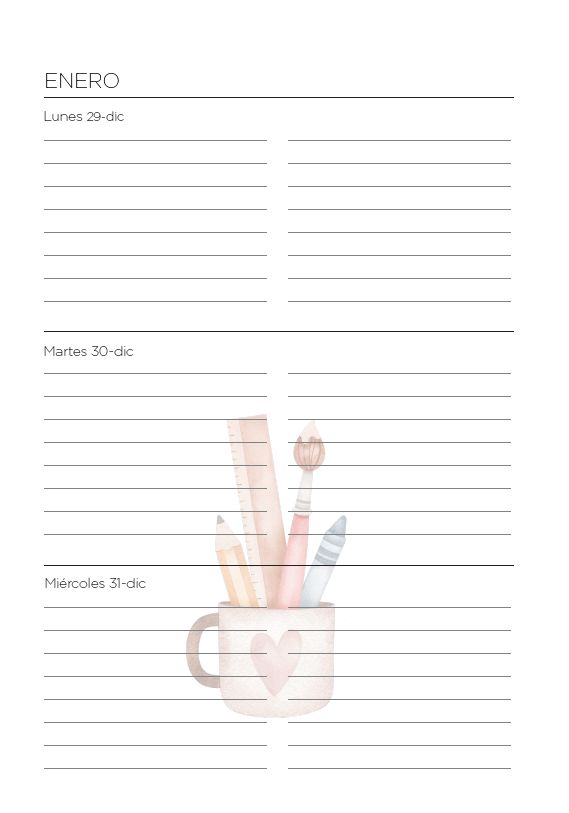 Agenda Semanal Docente Escuela Tita 1 (Para anillar o coser)