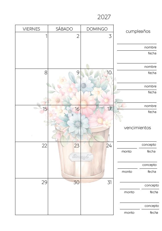 La Agenda Semanal Pétala AÑO 2027, en sus 176 páginas incluye: Carátulas Interiores, Datos Personales, Calendario 2027, Planner mensual, Planillas de Gastos Mensuales, Agenda Semanal con Horarios y Hojas para Notas. Además, te regalamos un calendario señalador para tu agenda.