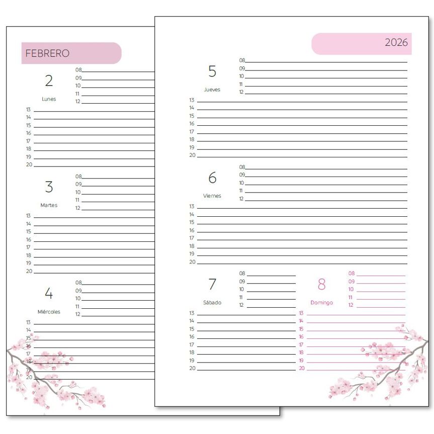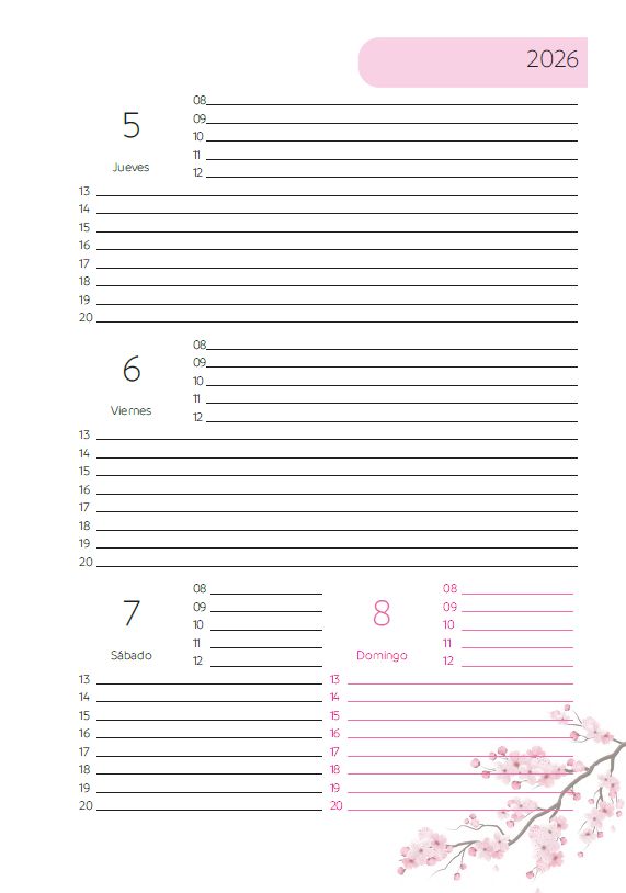 La Agenda SEMANAL Sakura, en sus 144 páginas incluye: Carátulas Interiores, Datos Personales, Calendario 2026, Planner mensual, Agenda Semanal y Hojas para Notas. Además, te regalamos un calendario señalador para tu agenda.