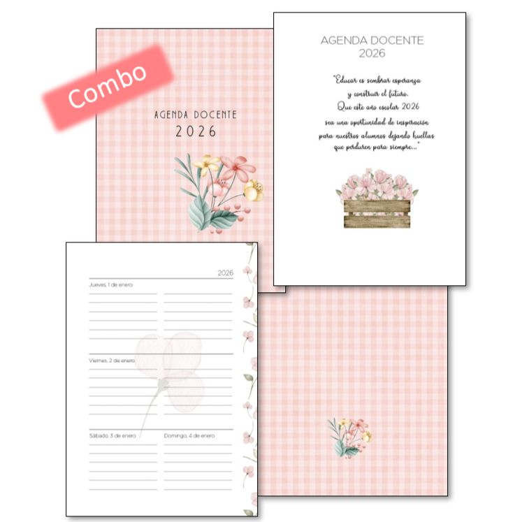 La opción de nuestro COMBO incluye la Agenda Semanal Docente ROSA ACQUA  y 2 juegos de TAPAS para elegir.