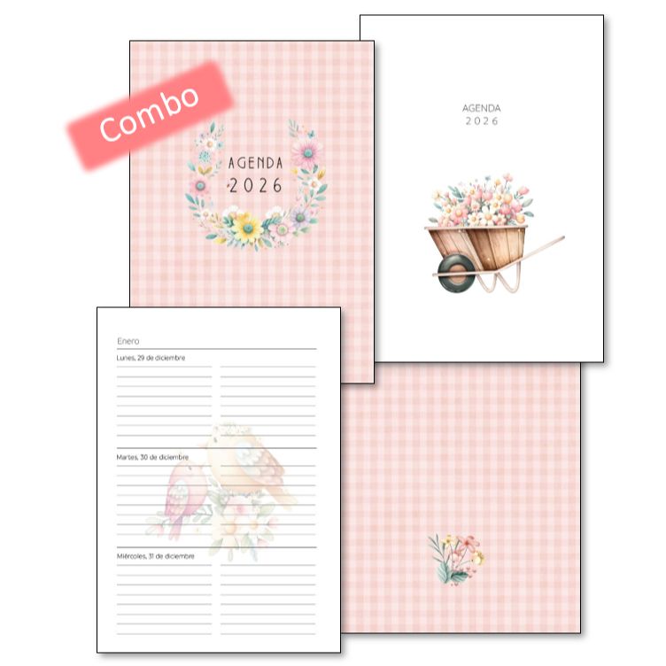 Combo Agenda Semanal Pétala 2026 y TAPAS (Para anillar o coser)