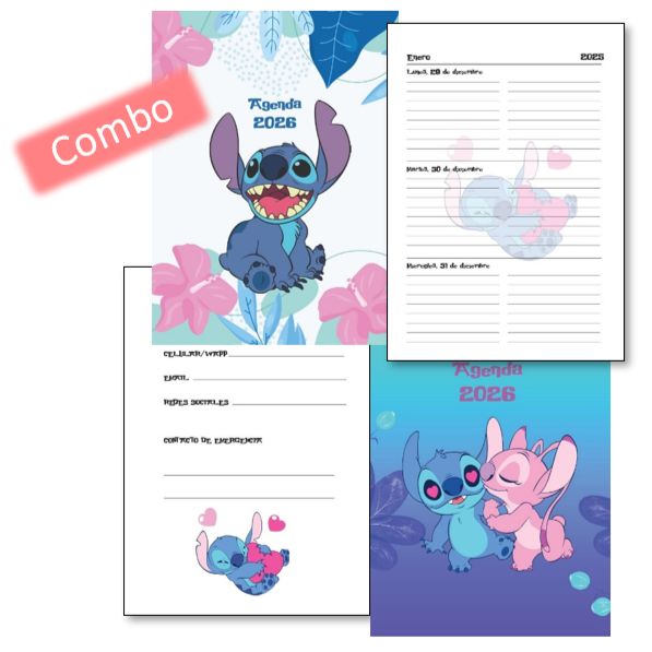 Combo Agenda Semanal STITCH 2026 + TAPAS (Para anillar)