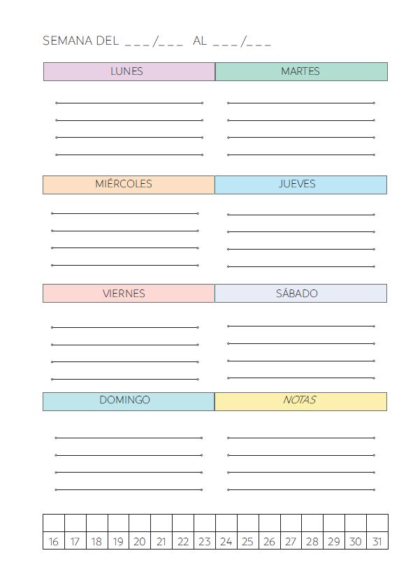 PLANNER MENSUAL Y SEMANAL PERPETUO